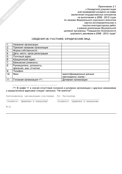- 2703Сведения об участнике (юридическом лице) конкурса на право заключения государственного контракта на выполнение научно-исследовательских и опытно-конструкторских работ по заказам Федерального дорожного агентства