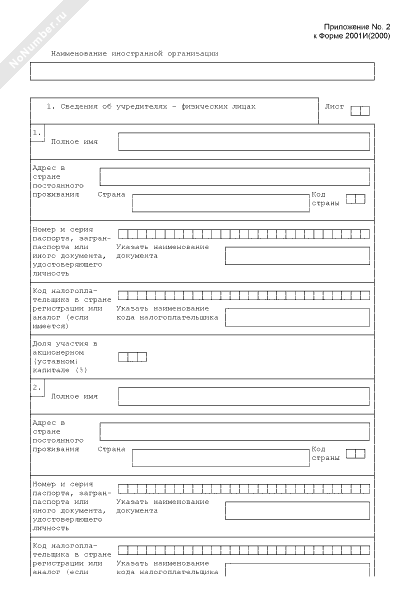 - 2713Сведения об учредителях — юридических лицах иностранной организации (приложение к форме № 2001И(2000))