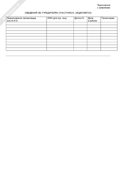 - 2715Сведения об учредителях (участниках, акционерах) (приложение к заявлению о внесении в реестр субъектов малого предпринимательства в Московской области)