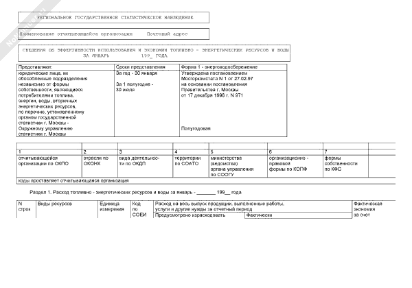 - 2741Сведения об эффективности использования и экономии топливно-энергетических ресурсов и воды. Форма № 1-энерговодосбережение