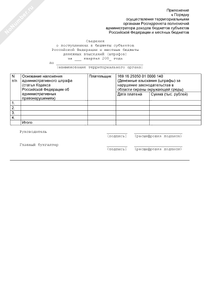 - 2806Сведения территориального органа Росгидромета о поступлениях в бюджеты субъектов Российской Федерации и местные бюджеты денежных взысканий (штрафов)