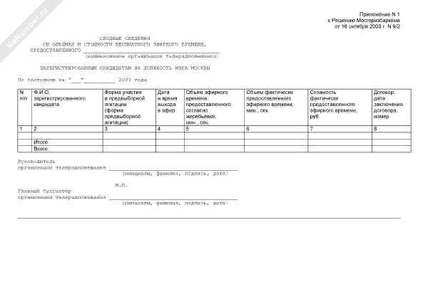 - 2843Сводные сведения об объемах и стоимости бесплатно предоставленного эфирного времени (форма № 1)