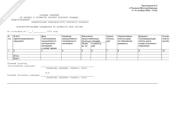 - 2849Сводные сведения об объемах и стоимости бесплатной печатной площади, предоставленного зарегистрированным кандидатам на должность Мэра г. Москвы