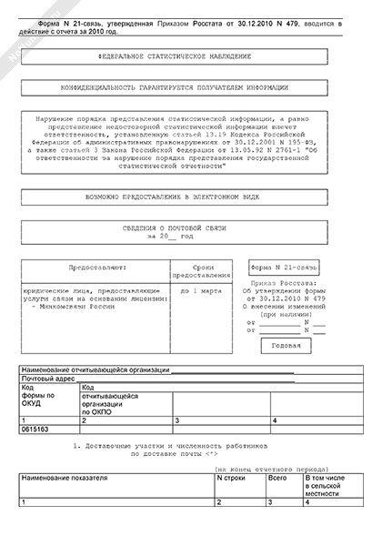 - 2989Сведения о почтовой связи. Форма № 21-связь (годовая)