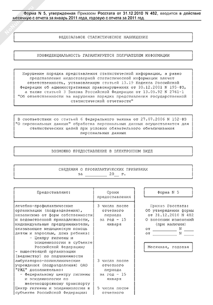 - 2997Сведения о профилактических прививках. Форма № 5 (месячная, годовая)