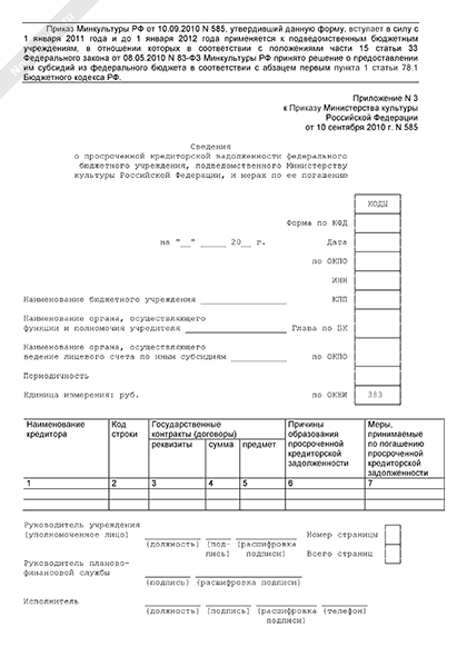 - 2992Сведения о просроченной кредиторской задолженности федерального бюджетного учреждения, подведомственного Министерству культуры Российской Федерации, и мерах по ее погашению