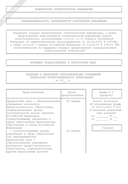 - 2998Сведения о работниках образовательных учреждений начального профессионального образования. Форма № 3 (профтех) (годовая)