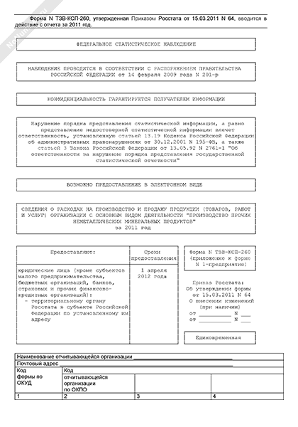 - 3023Сведения о расходах на производство и продажу продукции (товаров, работ и услуг) организации с основным видом деятельности «Производство прочих неметаллических минеральных продуктов» за 2011 год. Форма № ТЗВ-КСП-260 (приложение к форме N 1-предприятие)