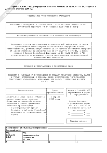 - 3029Сведения о расходах на производство и продажу продукции (товаров, работ и услуг) организации с основным видом деятельности «Производство электронных компонентов, аппаратуры для радио, телевидения и связи» за 2011 год. Форма № ТЗВ-КСП-320 (приложение к форме N 1-предприятие)