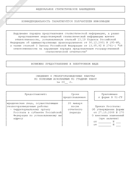 - 318Сведения о геологоразведочных работах. Форма № 01-ГР (годовая)