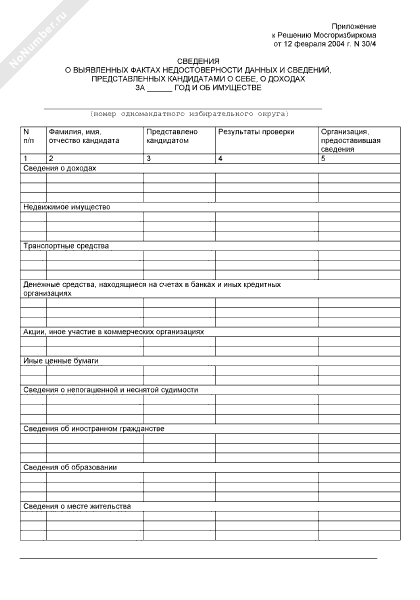- 304Сведения о выявленных фактах недостоверности представленных кандидатами на должность Мэра г. Москвы данных и сведений о себе, о доходах и об имуществе за год