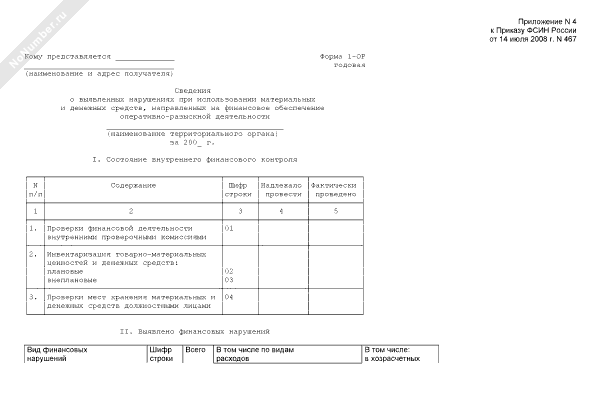 - 315Сведения о выявленных нарушениях при использовании материальных и денежных средств, направленных на финансовое обеспечение оперативно-разыскной деятельности. Форма № 1-ОР (годовая)