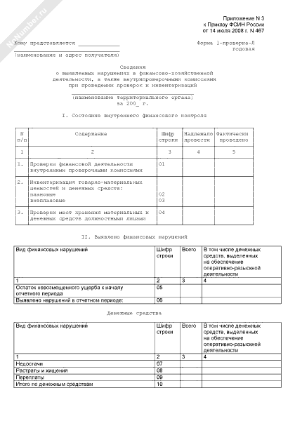 - 313Сведения о выявленных нарушениях в финансово-хозяйственной деятельности, а также внутрипроверочными комиссиями при проведении проверок и инвентаризаций. Форма № 1-проверка-Л (годовая)