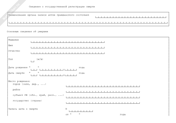 - 344Сведения о государственной регистрации смерти, предоставляемые в территориальные фонды обязательного медицинского страхования. Форма № СРС