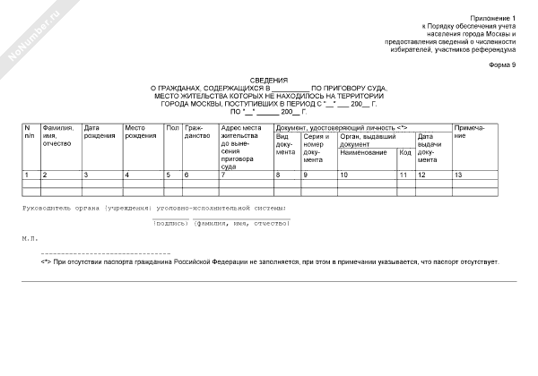 - 355Сведения о гражданах, содержащихся по приговору суда, место жительства которых не находилось на территории города Москвы (форма № 9)