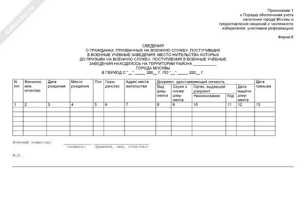 - 356Сведения о гражданах, призванных на военную службу, поступивших в военные учебные заведения, место жительства которых до призыва на военную службу, поступления в военные учебные заведения находилось на территории города Москвы (форма № 6)