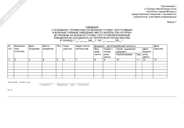 - 357Сведения о гражданах, призванных на военную службу, поступивших в военные учебные заведения, место жительства которых до призыва на военную службу, поступления в военные заведения не находилось на территории города Москвы (форма № 7)