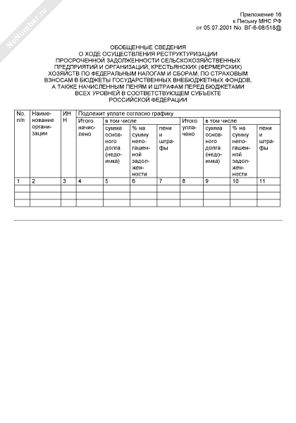- 44Обобщенные сведения о ходе осуществления реструктуризации просроченной задолженности сельскохозяйственных предприятий и организаций, крестьянских (фермерских) хозяйств по федеральным налогам и сборам, по страховым взносам в бюджеты государственных внебюджетных фондов, а также начисленным пеням и штрафам перед бюджетами всех уровней в соответствующем субъекте Российской Федерации