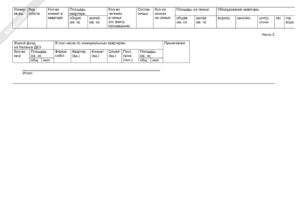 - 58Общие сведения по жилищному фонду. Сведения по квартирам (по основаниям заселения). Форма № 6.5