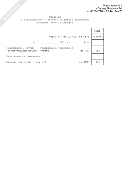 - 583Сведения о задолженности и льготах по уплате таможенных платежей, пеней и штрафов. Форма № 1-БФ(ДТ-ЗЛ)