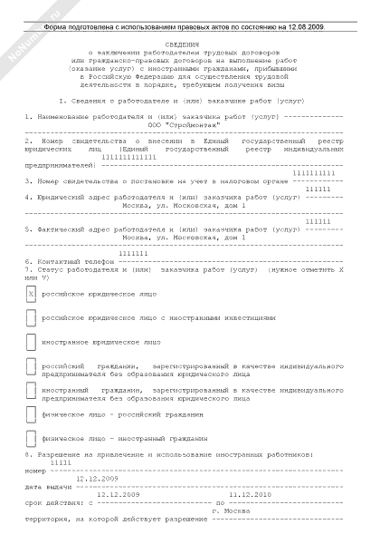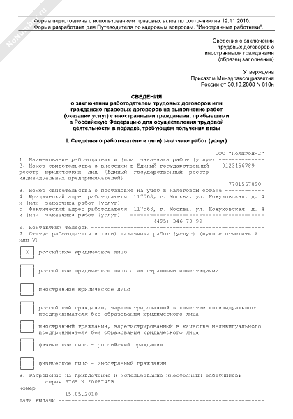 - 600Сведения о заключении трудовых договоров с иностранными гражданами