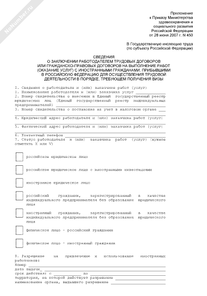 - 594Сведения о заключении работодателем трудовых договоров или гражданско-правовых договоров на выполнение работ (оказание услуг) с иностранными гражданами, прибывшими в Российскую Федерацию для осуществления трудовой деятельности в порядке, требующем получения визы