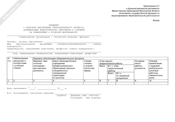 - 653Сведения о кадровом обеспечении образовательного процесса, квалификации педагогических работников и условиях их привлечения к трудовой деятельности организации — соискателя лицензии (филиала) на образовательную деятельность на территории Московской области