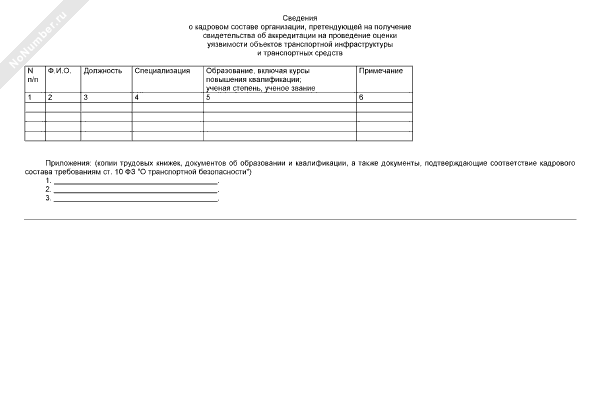 - 655Сведения о кадровом составе организации, претендующей на получение свидетельства об аккредитации на проведение оценки уязвимости объектов транспортной инфраструктуры и транспортных средств (приложение к заявлению на получение (продление) свидетельства об аккредитации)