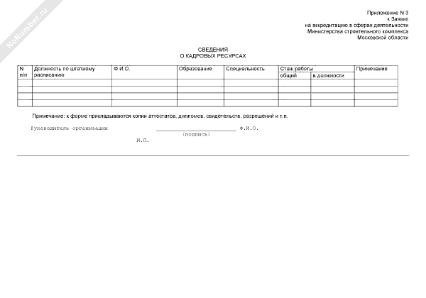 - 651Сведения о кадровых ресурсах (приложение к заявке на аккредитацию в сферах деятельности Министерства строительного комплекса Московской области)