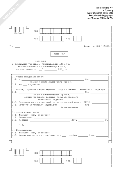 - 642Сведения о земельных участках, признаваемых объектом налогообложения по земельному налогу. Форма № 1153004