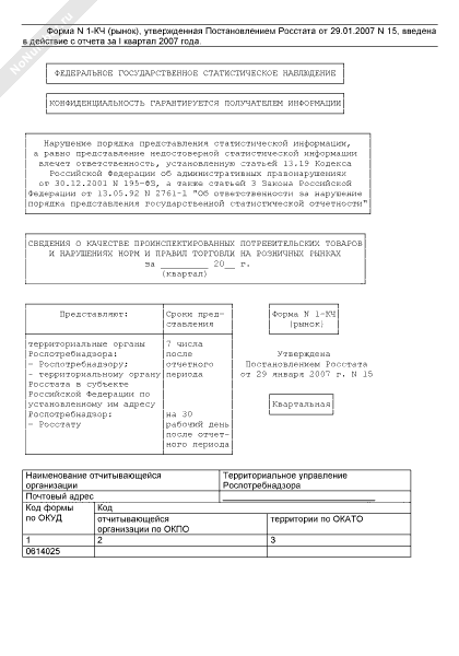 - 678Сведения о качестве проинспектированных потребительских товаров и нарушениях норм и правил торговли на розничных рынках. Форма № 1-КЧ (рынок)