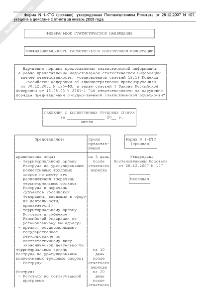 - 743Сведения о коллективных трудовых спорах. Форма № 1-КТС (срочная) (месячная)