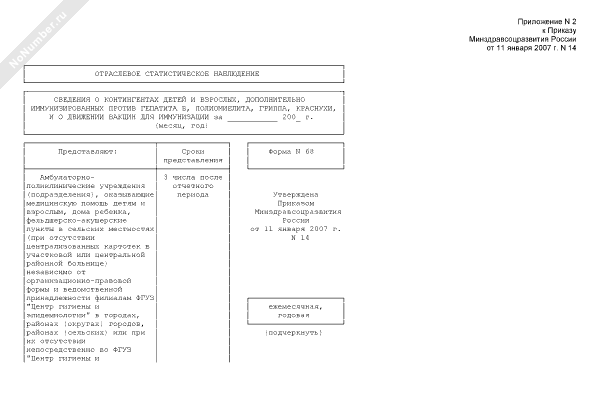 - 753Сведения о контингентах детей и взрослых, дополнительно иммунизированных против гепатита в, полиомиелита, гриппа, краснухи, и о движении вакцин для иммунизации. Форма № 68