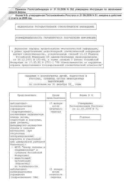 - 752Сведения о контингентах детей, подростков и взрослых, привитых против инфекционных заболеваний (форма № 6)