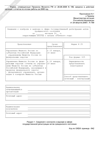 - 751Сведения о контроле и надзоре в сфере государственной регистрации актов гражданского состояния (форма № 25)