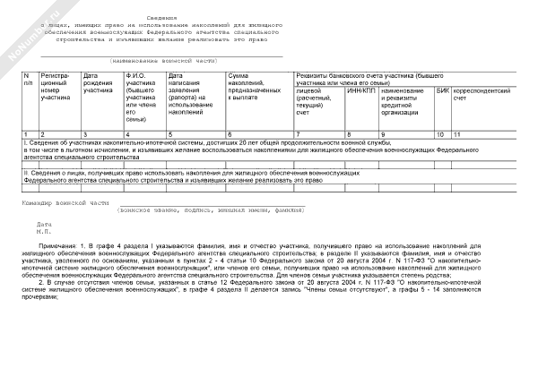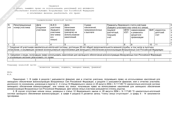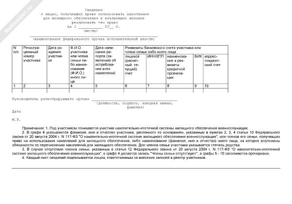 - 797Сведения о лицах, имеющих право на использование накоплений для жилищного обеспечения военнослужащих Вооруженных Сил Российской Федерации и изъявивших желание реализовать это право