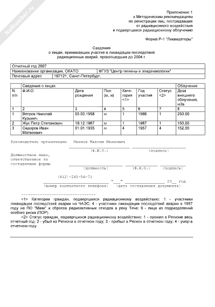 - 792Сведения о лицах, принимавших участие в ликвидации последствий радиационных аварий, произошедших до 2004 г. . Форма № Р-1 «Ликвидаторы»