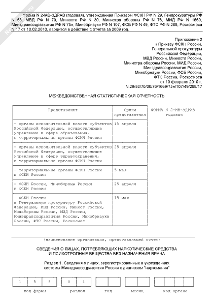 - 786Сведения о лицах, потребляющих наркотические средства и психотропные вещества без назначения врача. Форма № 2-МВ-ЗДРАВ (годовая)