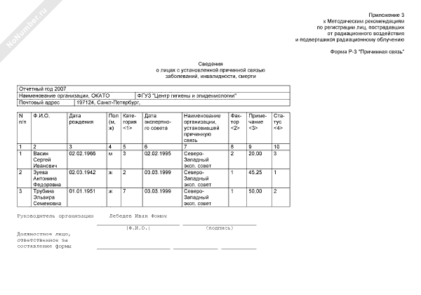 - 794Сведения о лицах с установленной причинной связью заболеваний, инвалидности, смерти . Форма № Р-3 «Причинная связь»