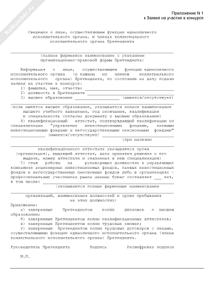 - 807Сведения о лице, осуществляющем функции единоличного исполнительного органа, и членах коллегиального исполнительного органа претендента (приложение к заявке на участие в конкурсе по отбору управляющих компаний для заключения с ними Пенсионным Фондом Российской Федерации договора доверительного управления средствами пенсионных накоплений)