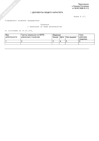- 808Сведения о лицензиях на виды деятельности предприятия, находящегося в сфере ведения и координации Роспрома. Форма № I/1