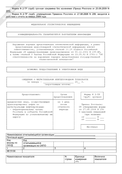 - 815Сведения о магистральном нефтепроводном транспорте. Форма № 2-ТР (труб) срочная (месячная)