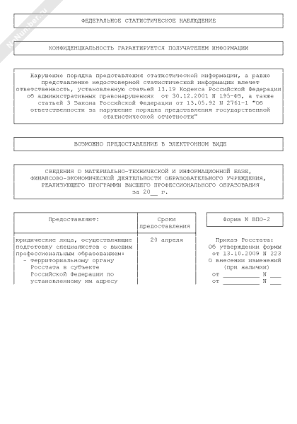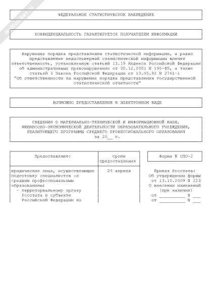 - 819Сведения о материально-технической и информационной базе, финансово-экономической деятельности образовательного учреждения, реализующего программы среднего профессионального образования. Форма № СПО-2 (годовая)