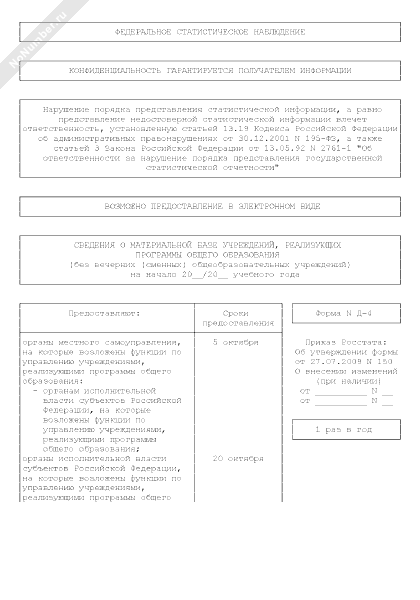 - 818Сведения о материальной базе учреждений, реализующих программы общего образования. Форма № Д-4