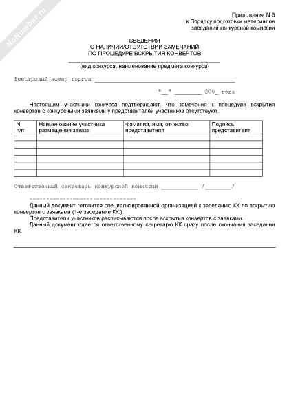 - 912Сведения о наличии/отсутствии замечаний по процедуре вскрытия конвертов с конкурсными заявками у представителей участников конкурса по размещению государственного заказа