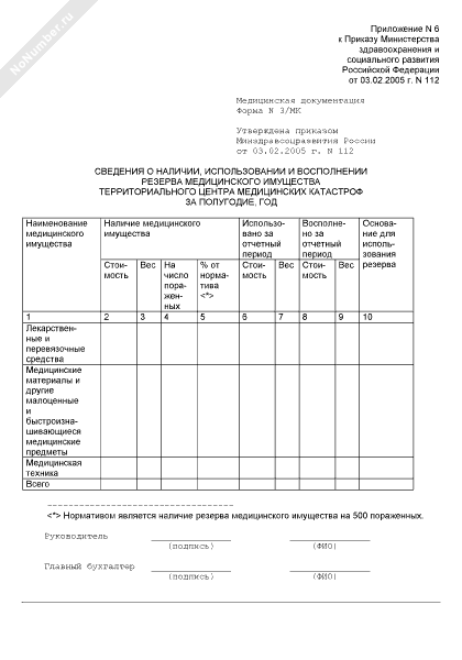 - 915Сведения о наличии, использовании и восполнении резерва медицинского имущества территориального центра медицинских катастроф. Форма № 3/МК