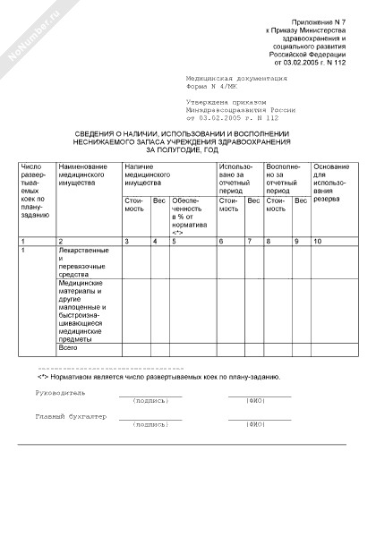 - 916Сведения о наличии, использовании и восполнении неснижаемого запаса учреждения здравоохранения. Форма № 4/МК