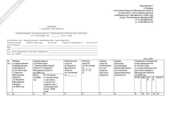 - 913Сведения о наличии документов у муниципального образования Московской области для перечисления межбюджетных трансфертов