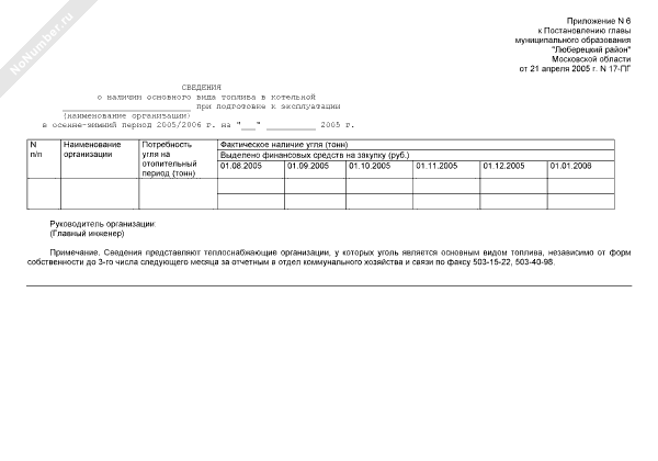 - 920Сведения о наличии основного вида топлива в котельной при подготовке к эксплуатации в осенне-зимний период на территории Люберецкого района Московской области