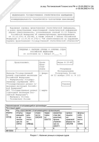 - 917Сведения о наличии речных и озерных судов Российской Федерации. Форма № 25-ВТ